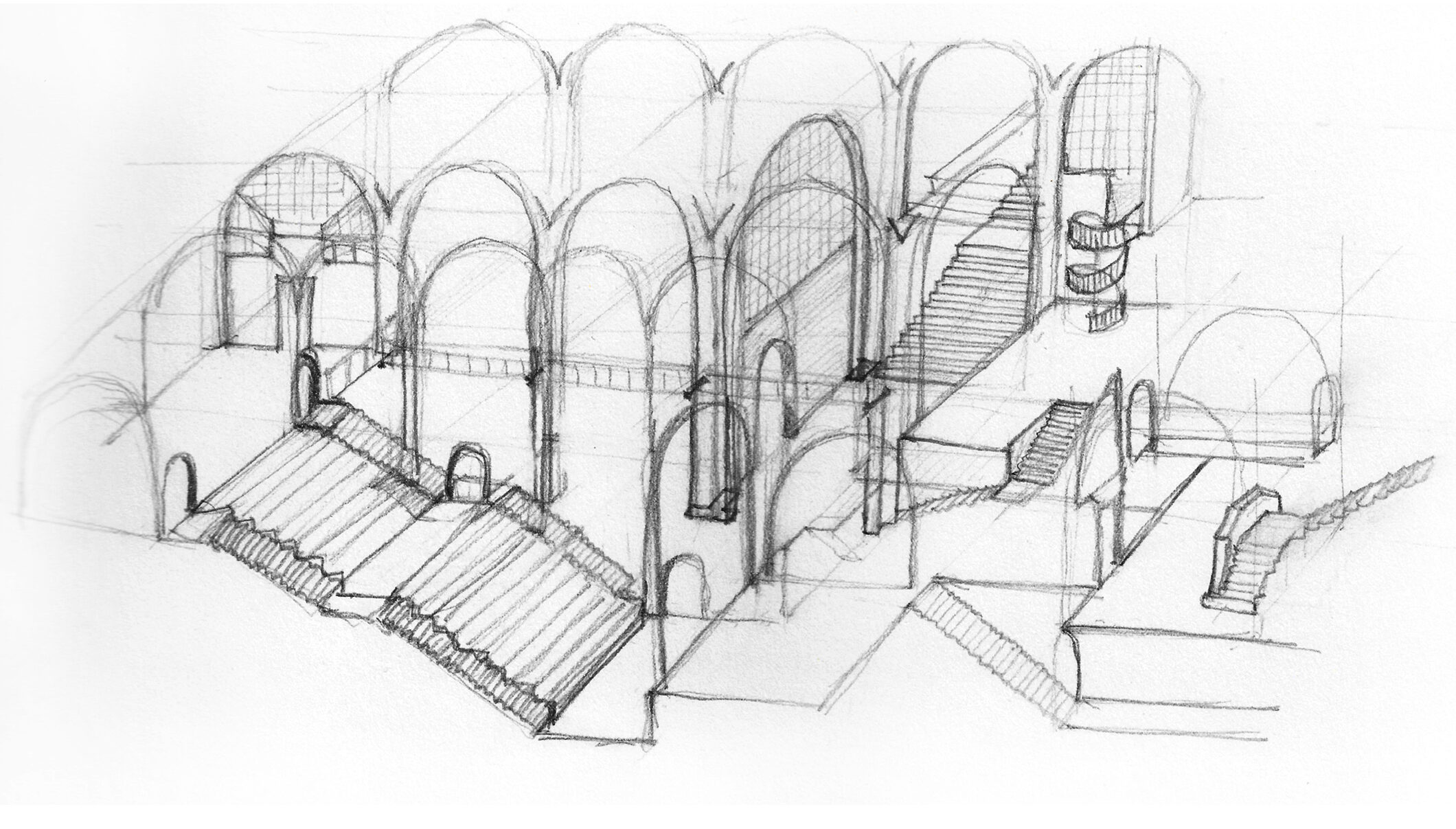 La atmósfera del lugar evoca imágenes de las cárceles imaginarias de Piranesi, donde la monumentalidad convive con lo laberíntico. Aquí, ese universo oscuro se resignifica mediante estrategias espaciales que incluyen horadaciones controladas, intervenciones puntuales y conexiones entre distintos niveles, con el fin de generar áreas habitables, dinámicas y adaptables a diferentes usos culturales y comunitarios.